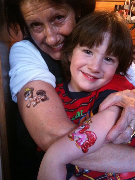 wenn auch die Oma sich überreden läßt sich tätowieren zu lassen. Coole Oma.Glücklicher Felix.